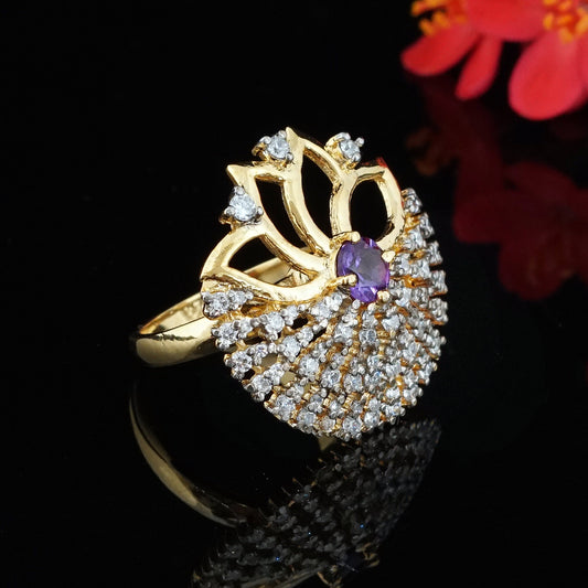 Amethyst floral ring over silver and 18kt gold platting